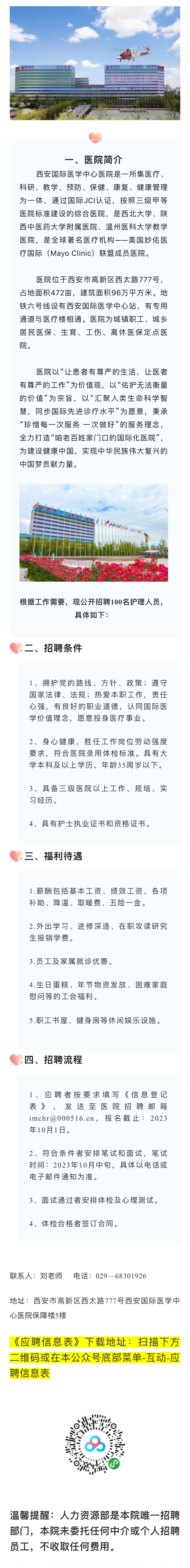 西安國際醫(yī)學中心醫(yī)院護理招聘簡章