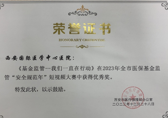 近日,西安市醫(yī)療保障局公布2023年全市醫(yī)保基金監(jiān)管“安全規(guī)范年”短視頻大賽評選結(jié)果,我院宣傳短視頻《基金監(jiān)管——我們一直在行動》榮獲優(yōu)秀獎。