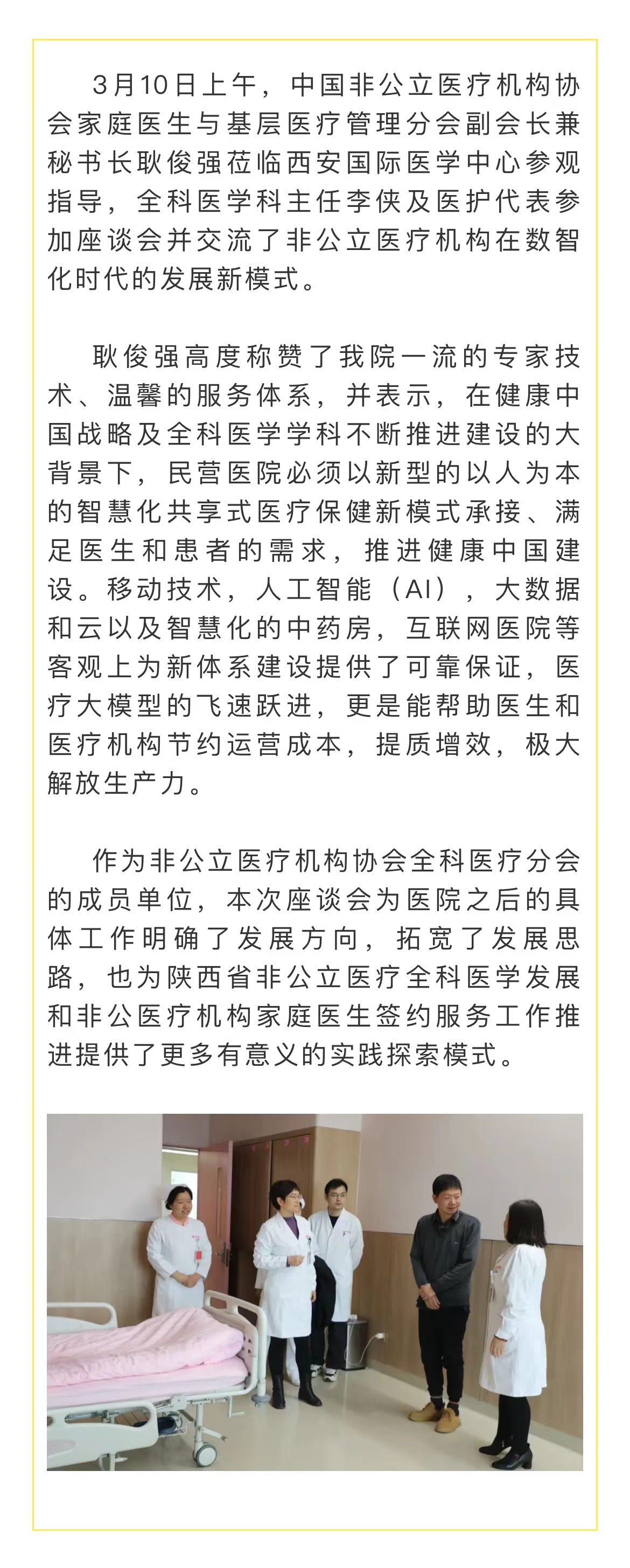 • 國(guó)內(nèi)首家高分通過(guò)JCI認(rèn)證的醫(yī)院 西安國(guó)際醫(yī)學(xué)中心醫(yī)院為國(guó)內(nèi)首家高分通過(guò)JCI認(rèn)證的醫(yī)院,該稱(chēng)號(hào)由國(guó)際醫(yī)療機(jī)構(gòu)認(rèn)證聯(lián)合委員會(huì)頒布。