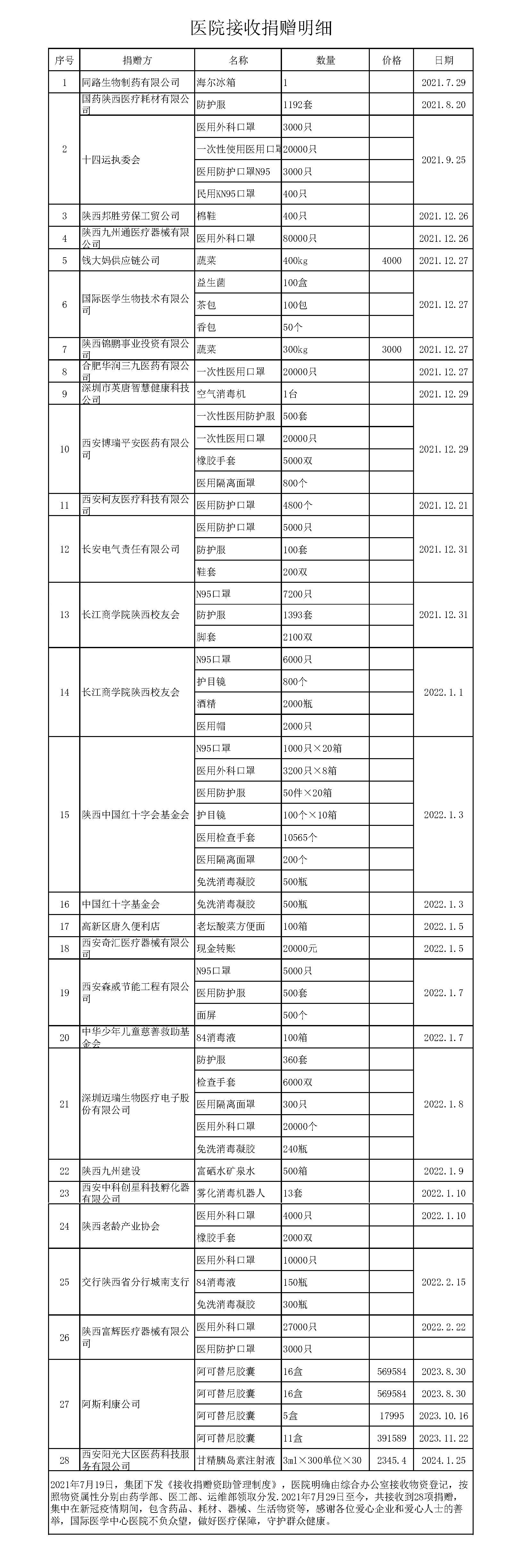 疫情期間接收物資主要有食品類、服飾類、清潔用品類、消毒用品等,物資主要有;方便面、礦泉水、84消毒液、慕斯軟墊、鞋子、拉拉褲、醫(yī)用垃圾袋、15L垃圾桶、等。捐贈物資均是通過庫房管理員簽字接收直接入庫管理,領(lǐng)取方式:經(jīng)各部門領(lǐng)導(dǎo)同意后按要求發(fā)放,統(tǒng)一制定發(fā)放模版,部門(領(lǐng)用人)簽字,領(lǐng)用流程結(jié)束。庫房管理員將所有物資發(fā)放明細(xì)同步按類別歸檔保存。