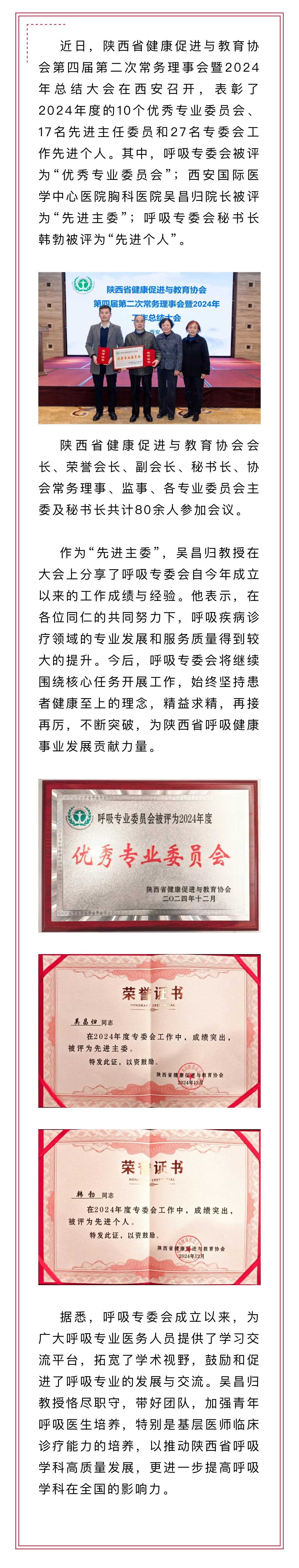吳昌歸教授被評為陜西省健康促進(jìn)與教育協(xié)會2024年度先進(jìn)主委