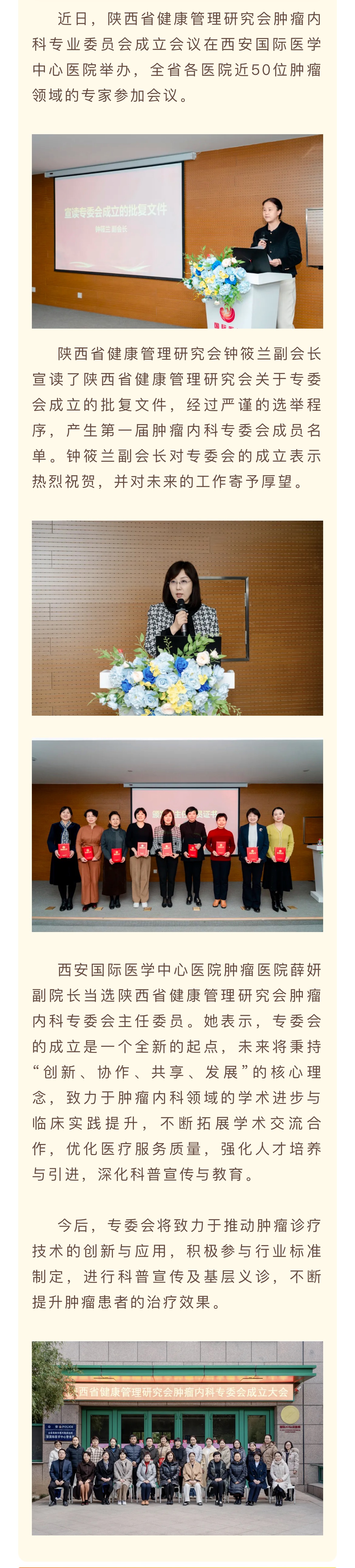 薛妍教授當選陜西省健康管理研究會腫瘤內科專委會主委