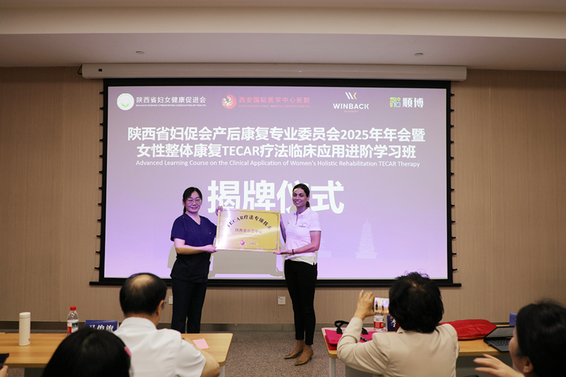 UFP教學(xué)醫(yī)院物理治療師INES與產(chǎn)后及盆底康復(fù)科主任徐海洋共同為我院“TECAR療法專(zhuān)項(xiàng)技術(shù)陜西省示范中心”揭牌。