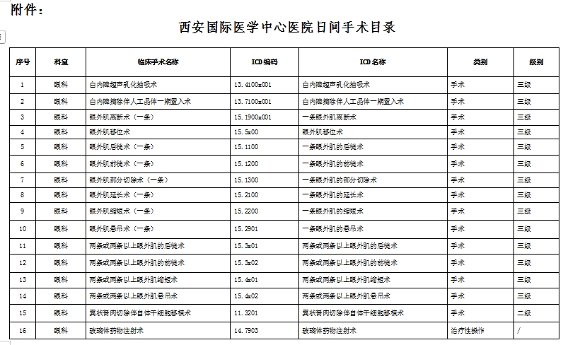為進(jìn)一步加強(qiáng)本院日間診療管理,規(guī)范日間診療服務(wù)行為,保障日間醫(yī)療質(zhì)量與安全,按照《醫(yī)療機(jī)構(gòu)日間醫(yī)療質(zhì)量管理暫行規(guī)定》、《手術(shù)質(zhì)量安全提升行動方案(2023—2025年)》、《提升醫(yī)療質(zhì)量安全行動計(jì)劃(2023-2025年)》等各類文件要求,現(xiàn)對我院日間手術(shù)目錄更新,具體公示如下: