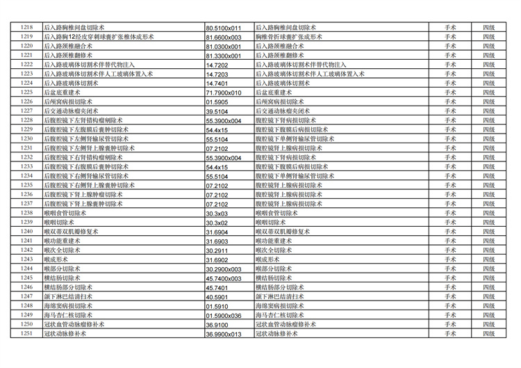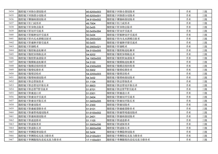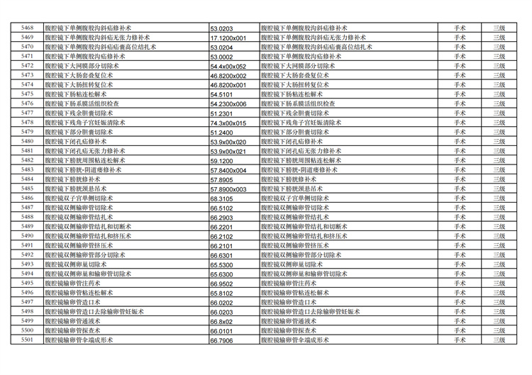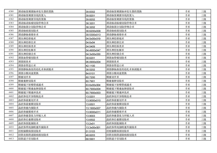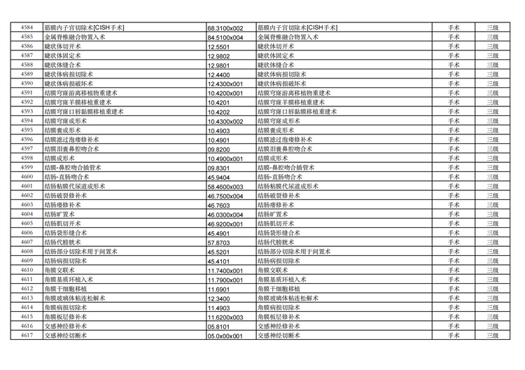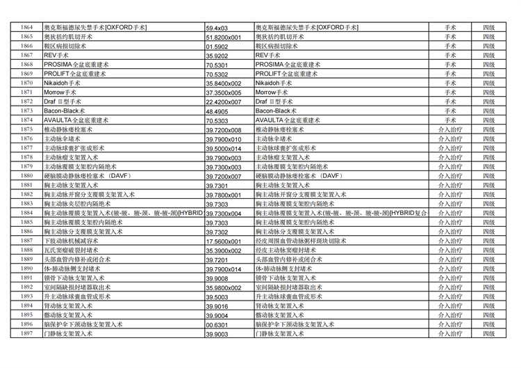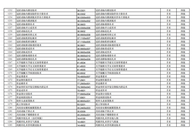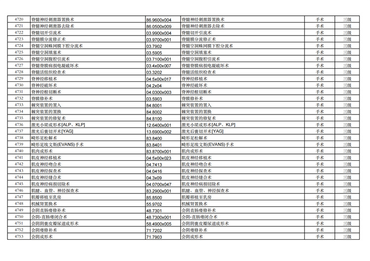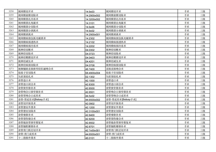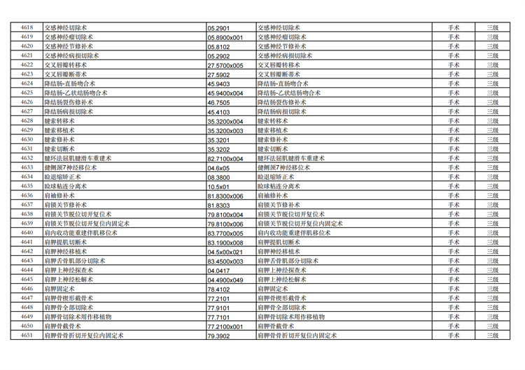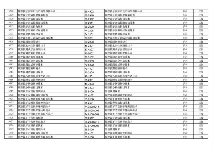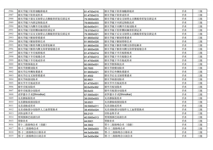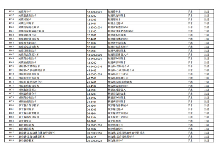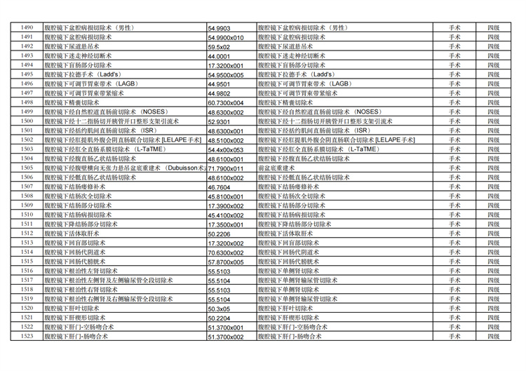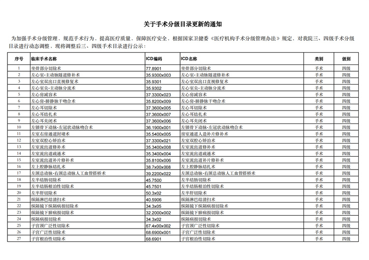 關(guān)于手術(shù)分級(jí)目錄更新的通知