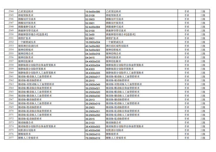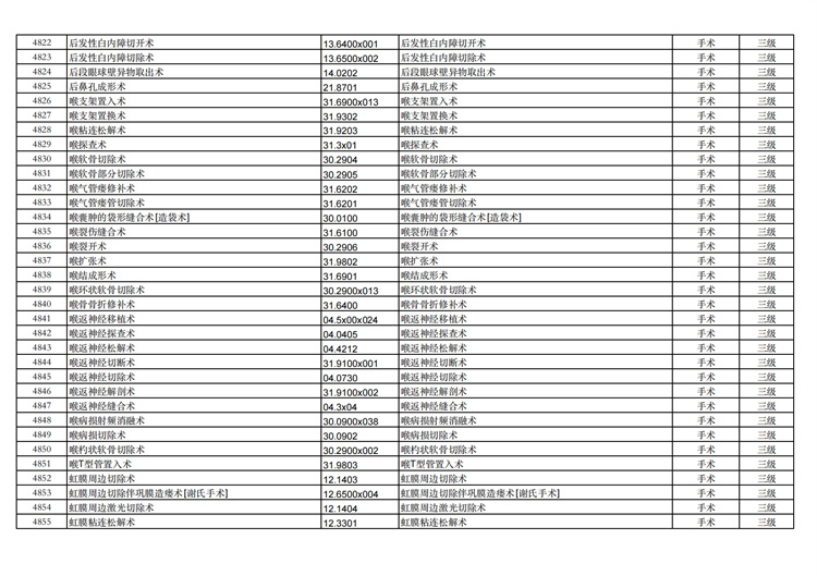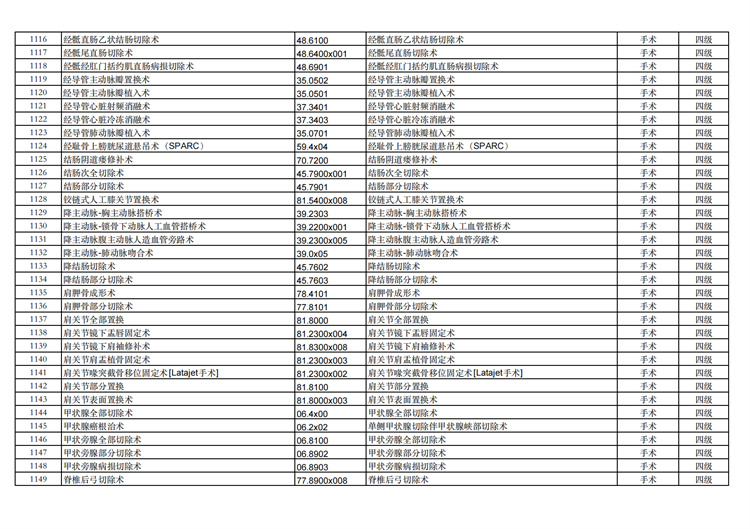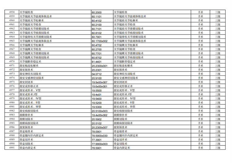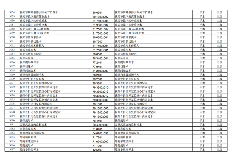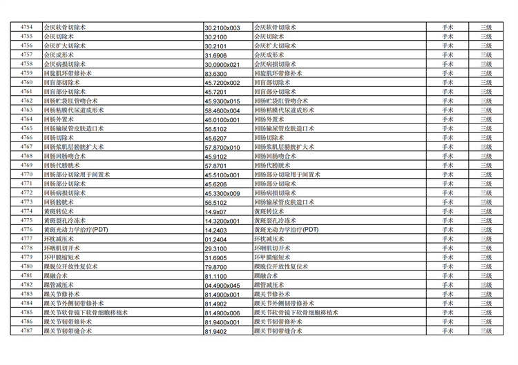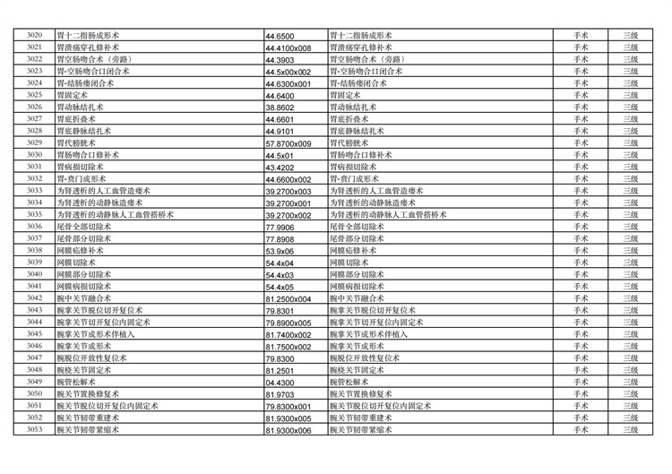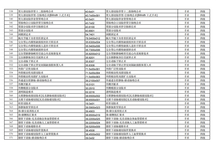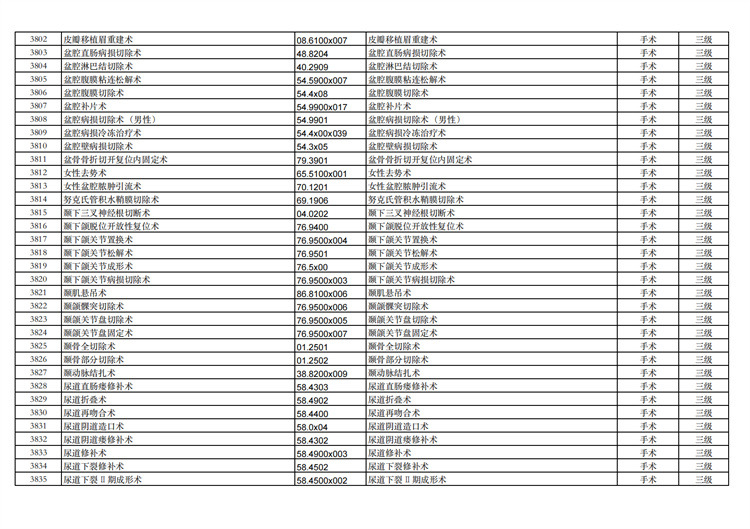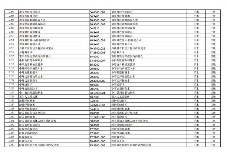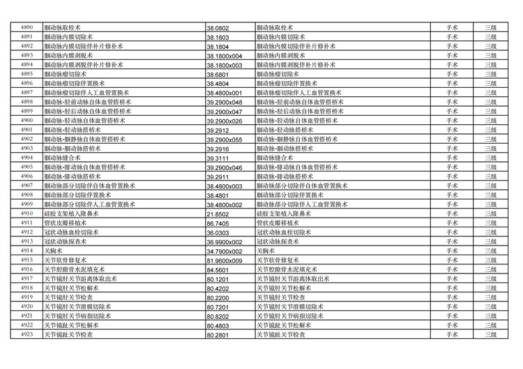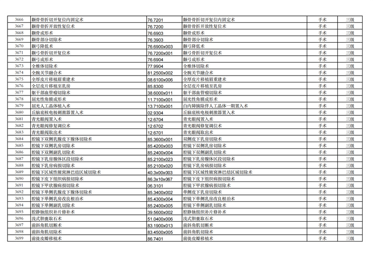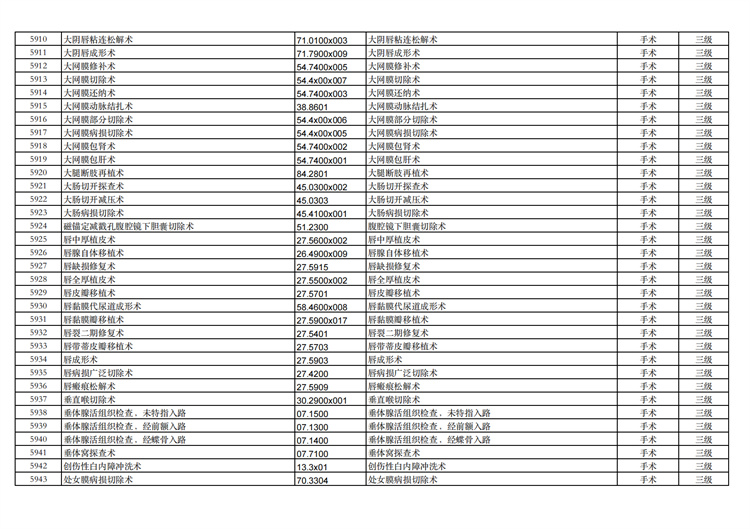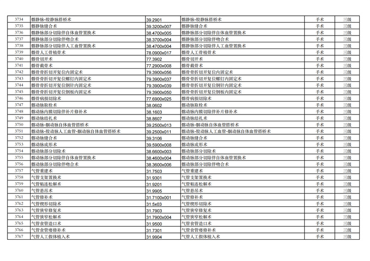 關(guān)于手術(shù)分級(jí)目錄更新的通知