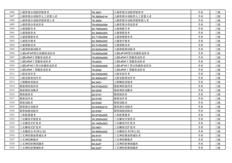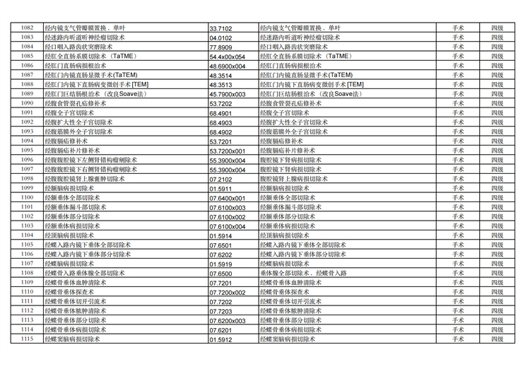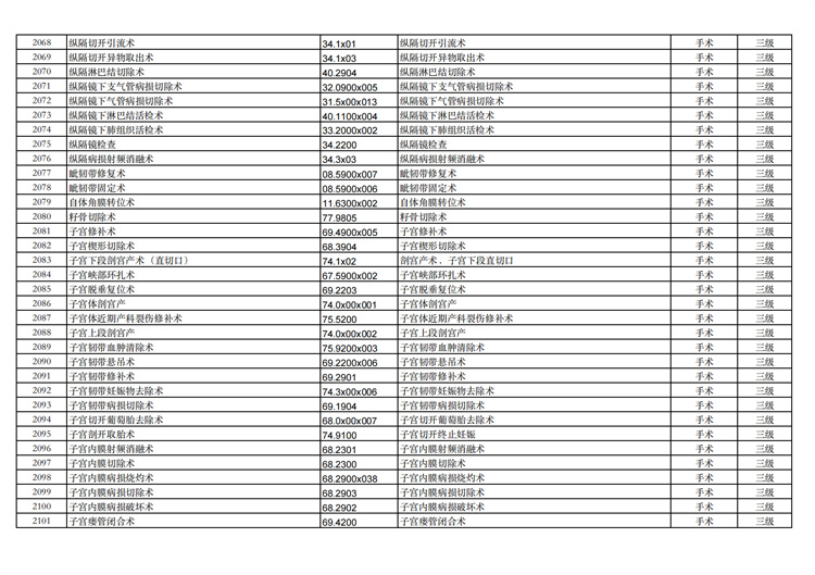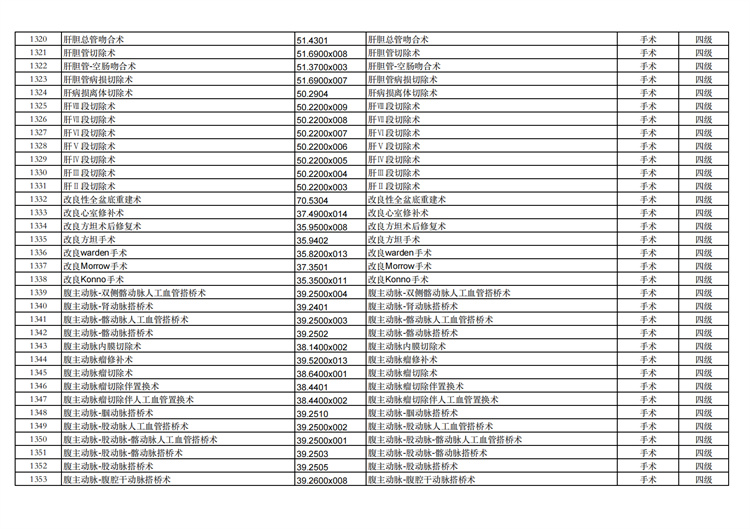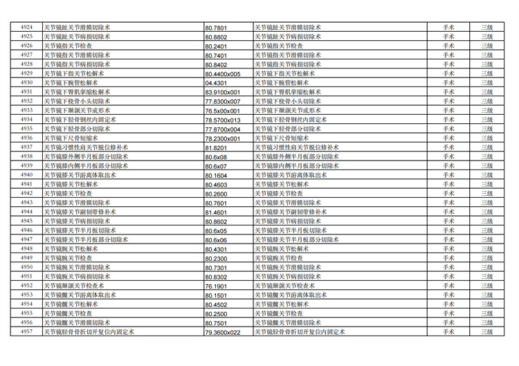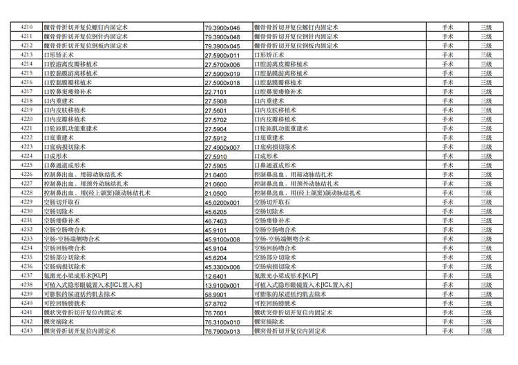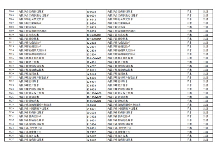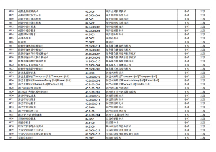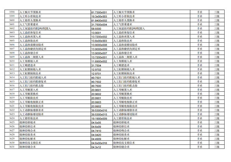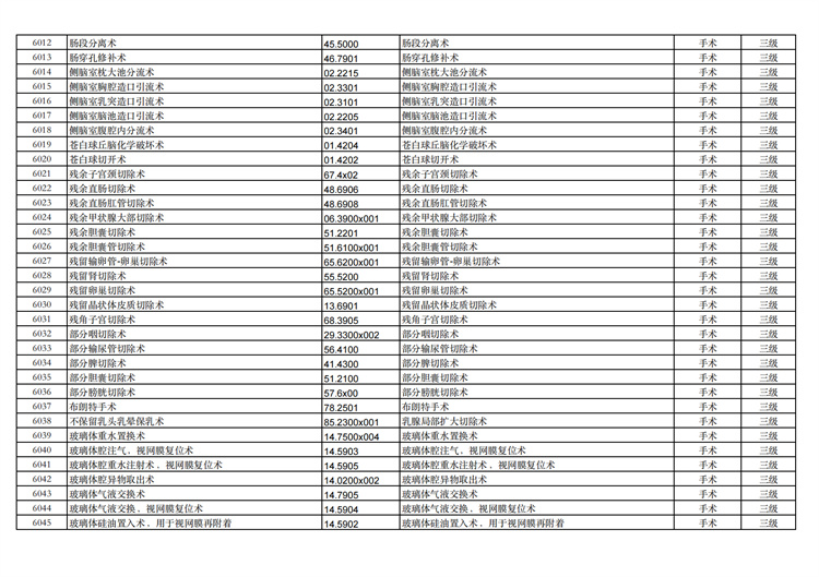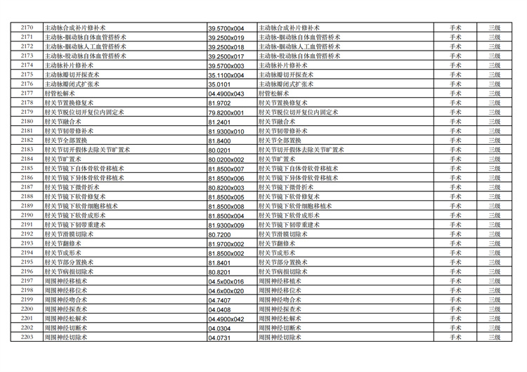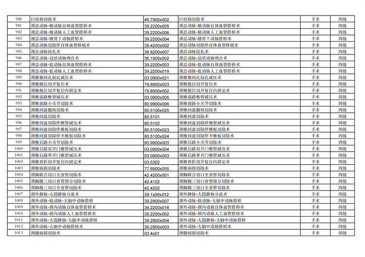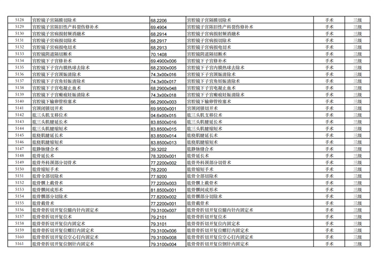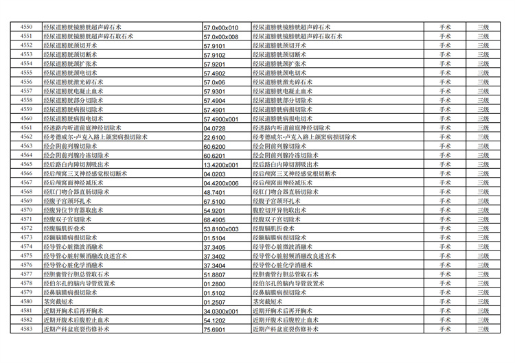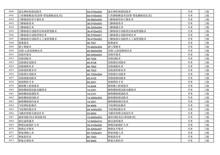 關(guān)于手術(shù)分級(jí)目錄更新的通知