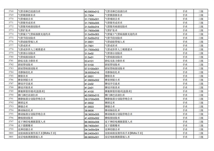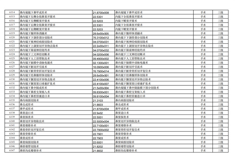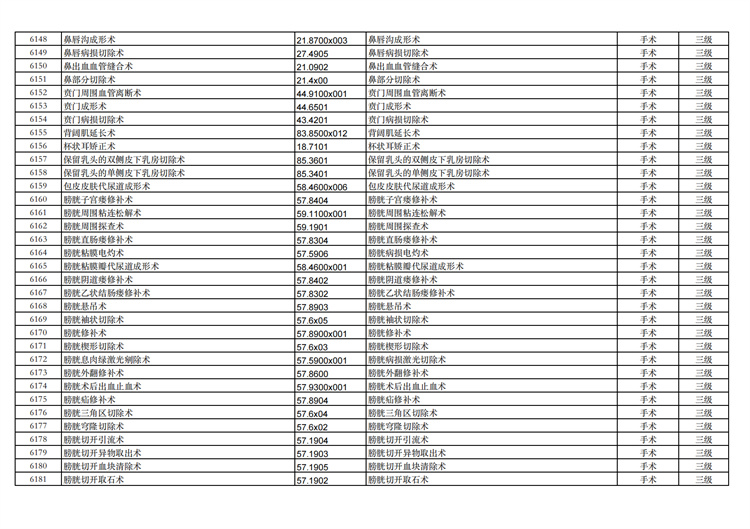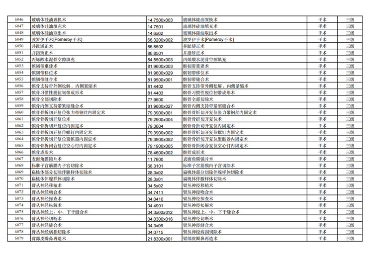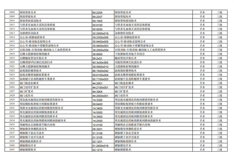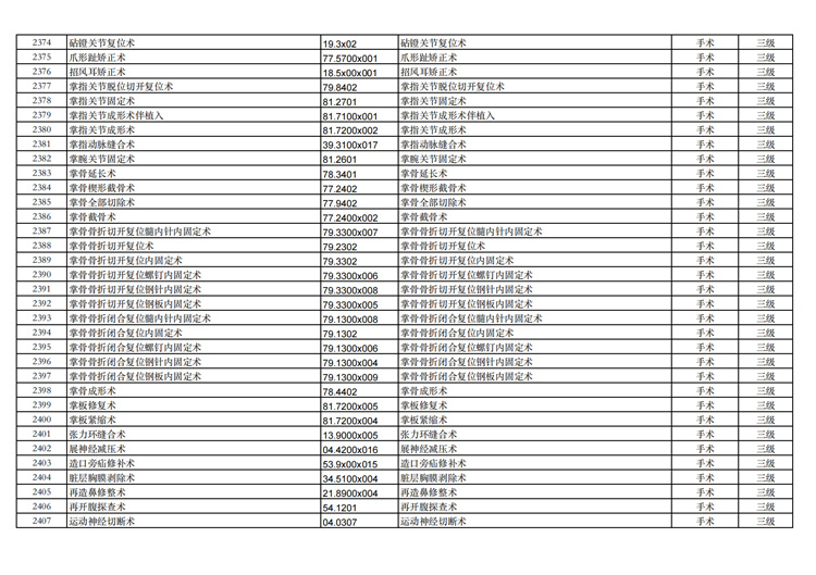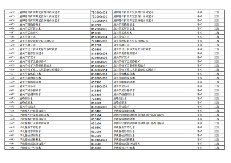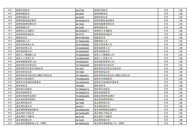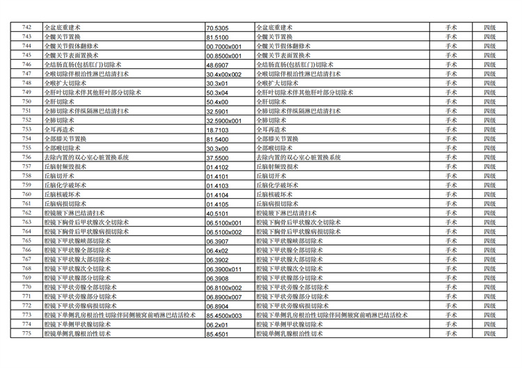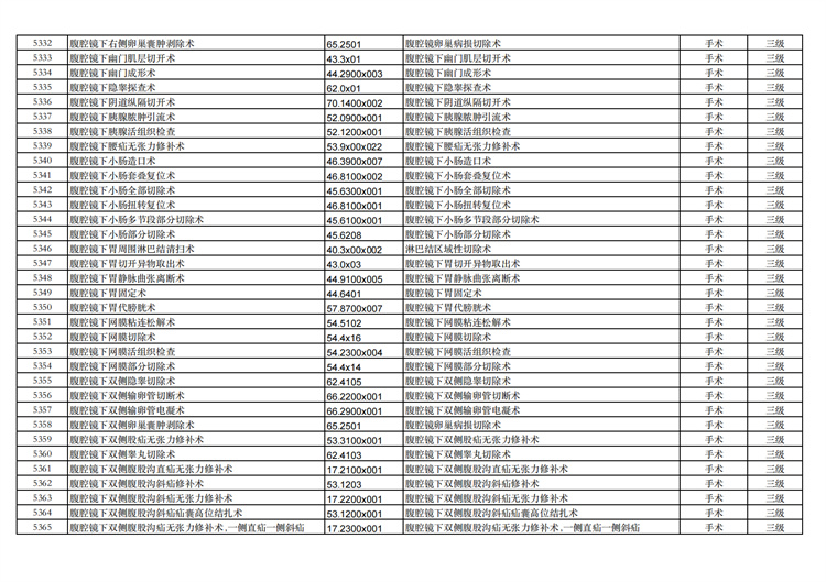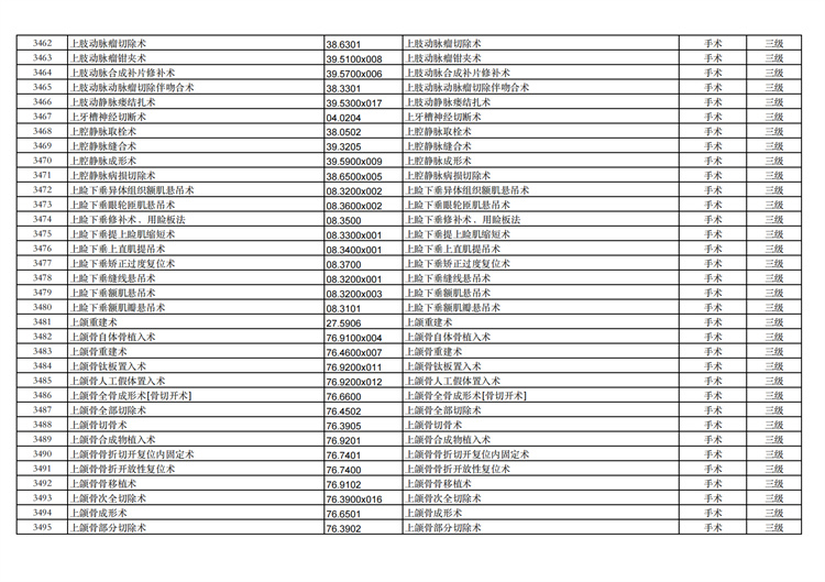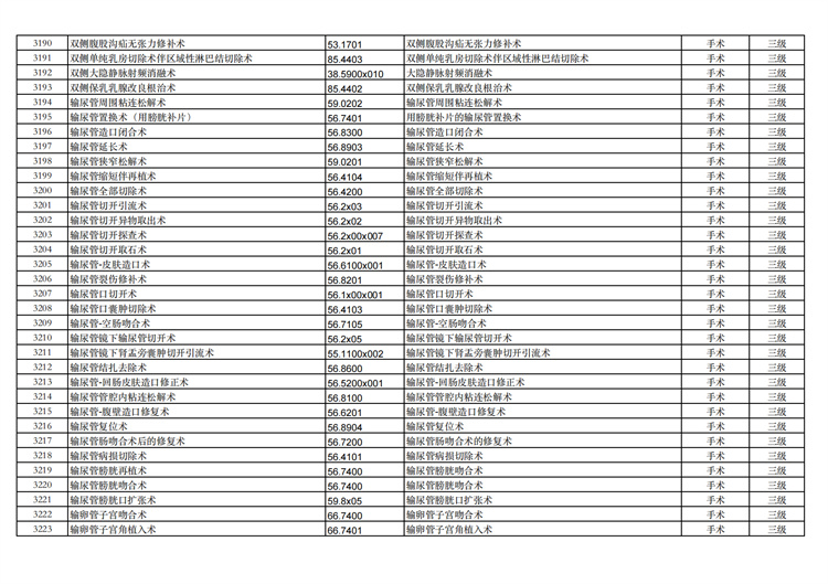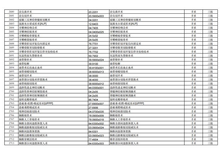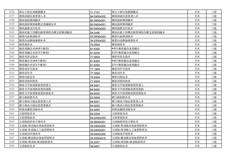 關(guān)于手術(shù)分級(jí)目錄更新的通知