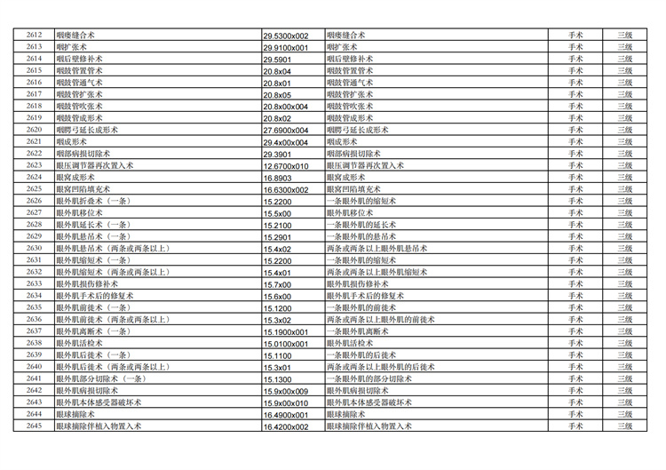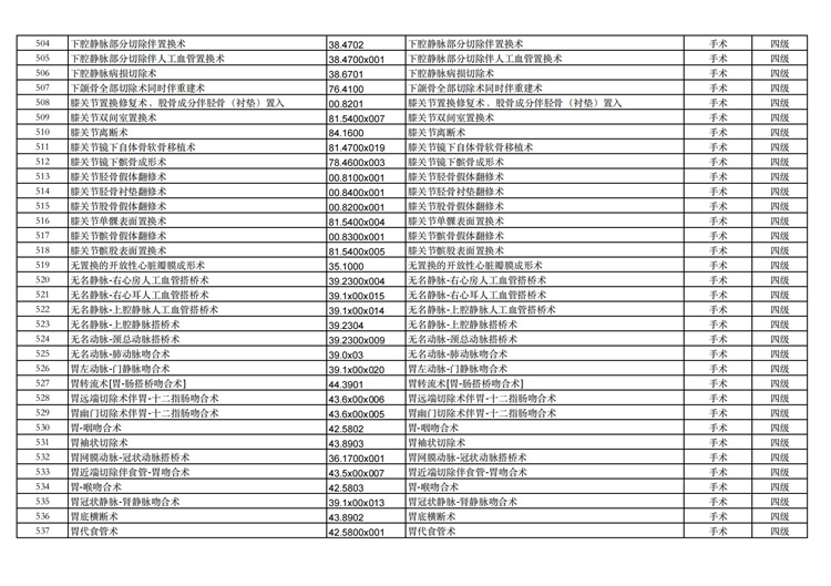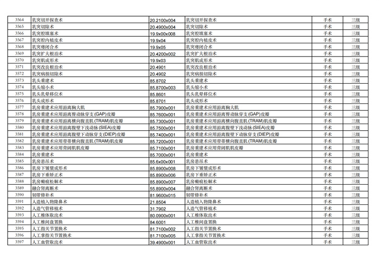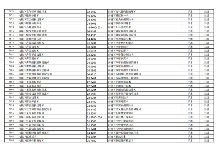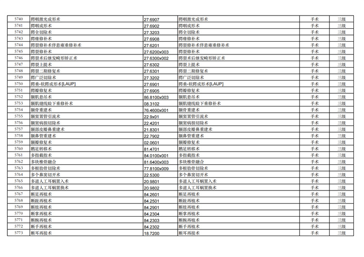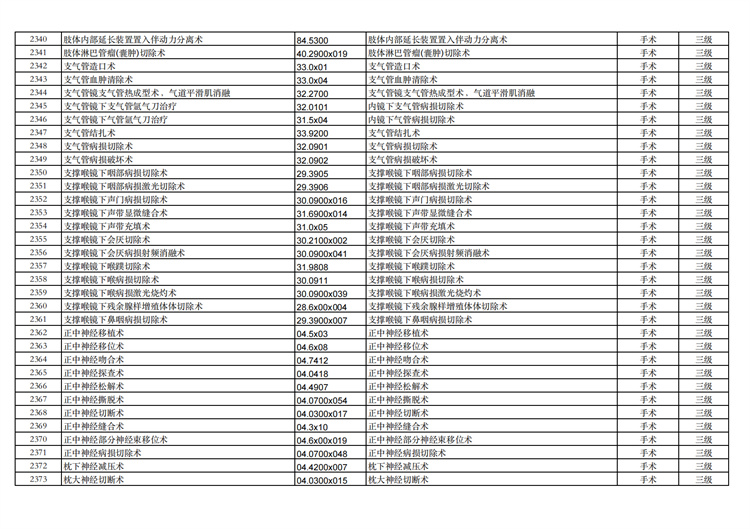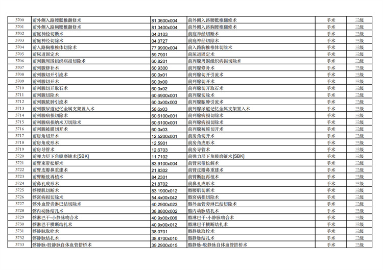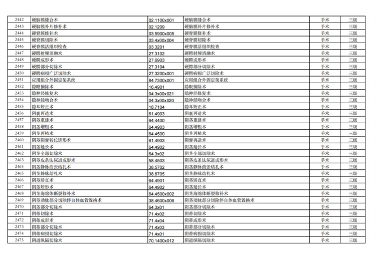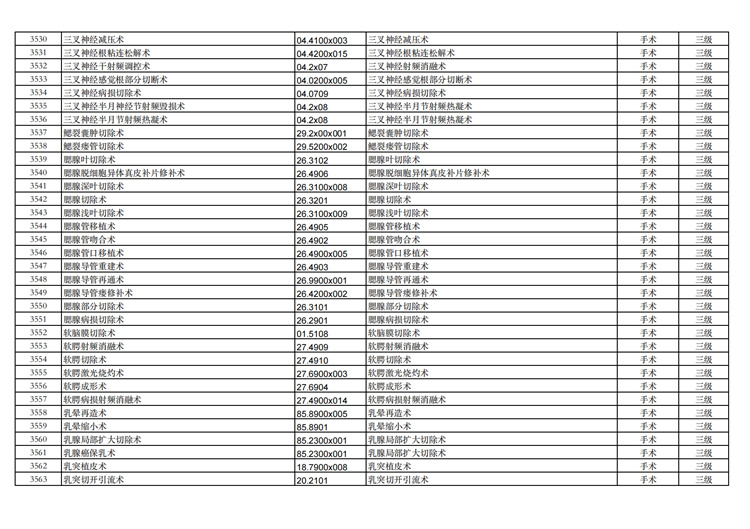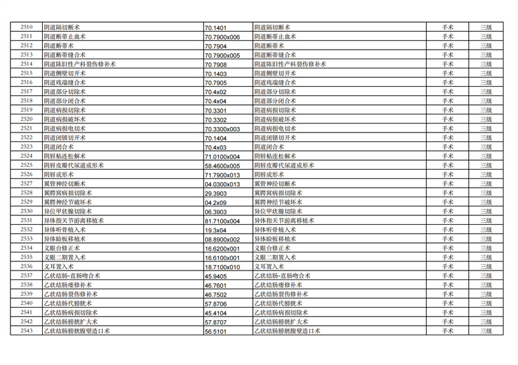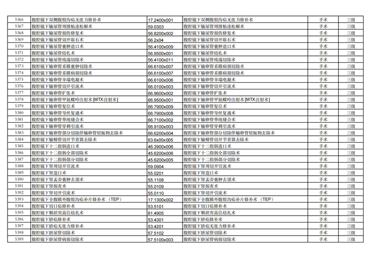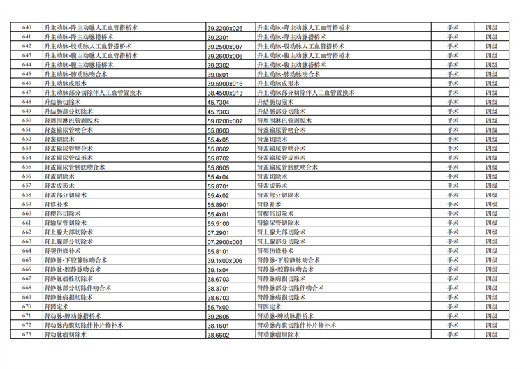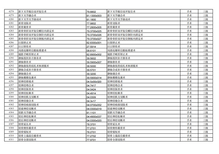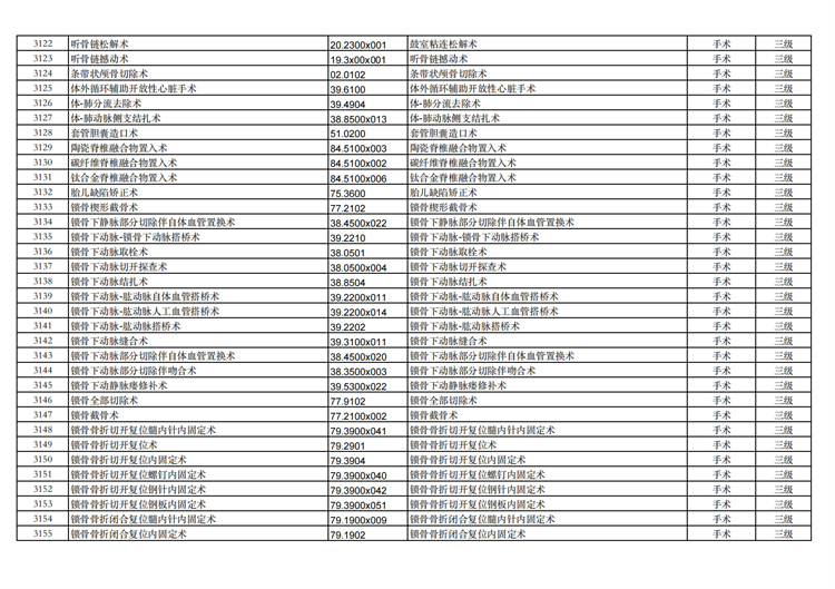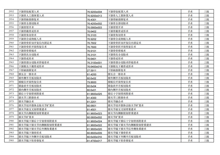 關(guān)于手術(shù)分級(jí)目錄更新的通知